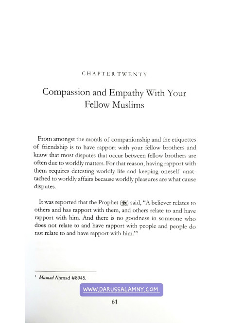 This exploration draws on verses from the Quran, wisdom from the Sunnah, and the sayings of pious predecessors. It explores the manners and etiquettes that transform acquaintances into true companions, allies who strengthen faith and encourage the fulfillment of obligations to Allah. "Etiquette and Morals of Companionship" aims to provide the knowledge and understanding needed to choose companions wisely. It also aims to embody the qualities of a righteous friend and forge bonds that endure beyond the fleeting moments of this world, towards the eternal bliss of Paradise.