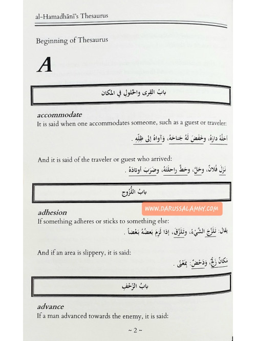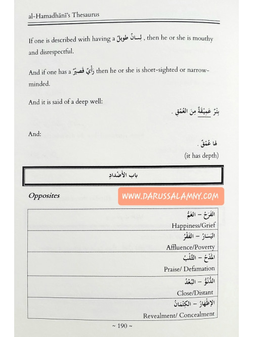 Al-Hamadhani's Thesaurus: Selected Arabic Words and Usage