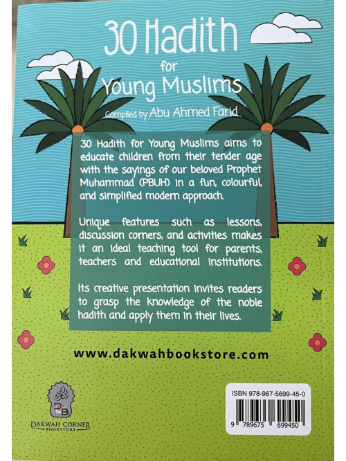 30 Hadith for Youn Muslims aims to educate children from their tender age with the sayings of our beloved Prophet Muhammad (PBUH) in a fun, colorful, and simplified modern approach. Unique features such as lessons, discussion corners, and activities make it an ideal teaching tool for parents, teachers and educational institutions. Its creative presentation invites readers to grasp the knowledge of the noble hadith and apply them in their lives.